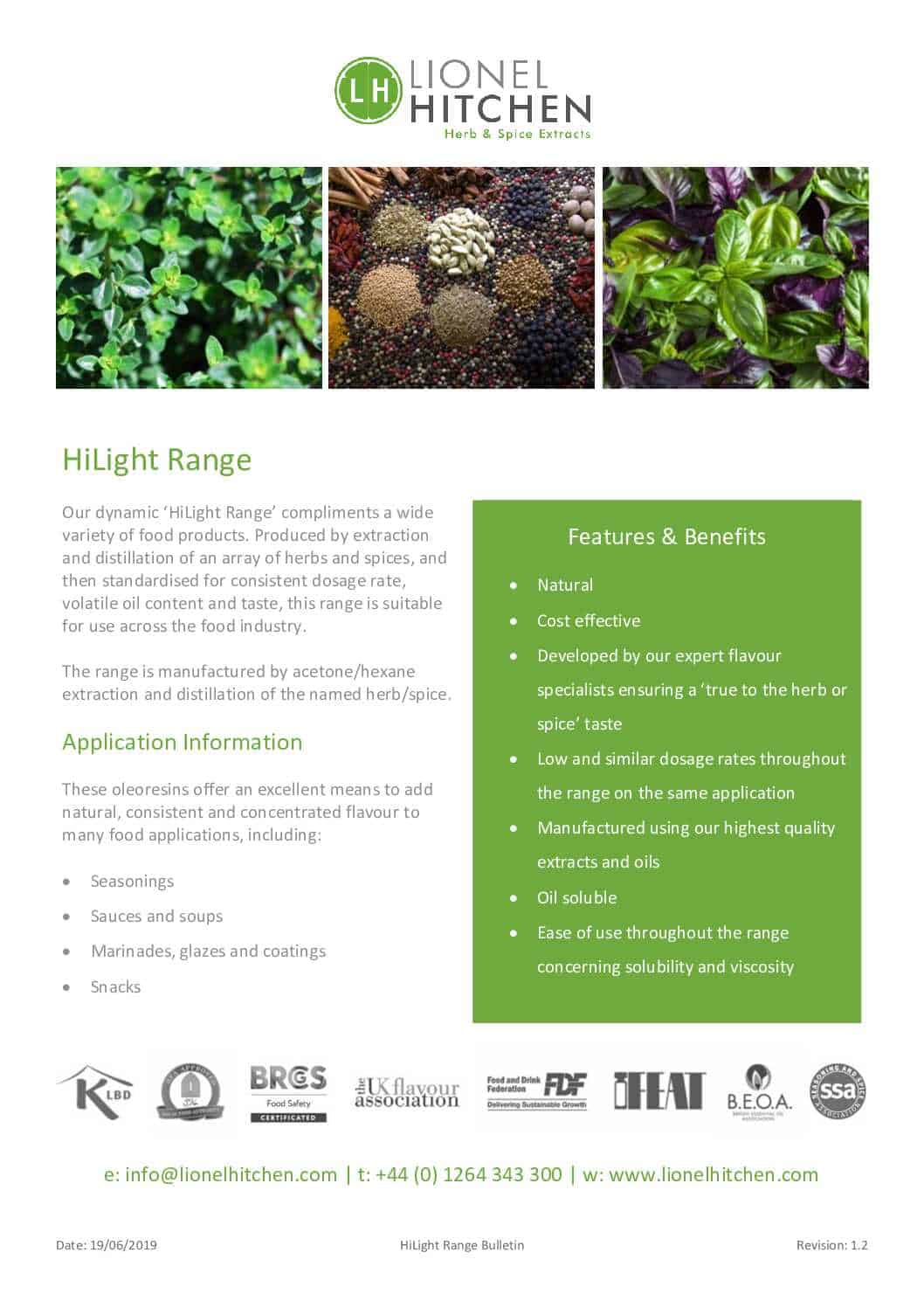 Our dynamic ‘HiLight Range’ compliments a wide variety of food products. Produced by extraction and distillation of an array of herbs and spices, and then standardised for consistent dosage rate, volatile oil content and taste, this range is suitable for use across the food industry.